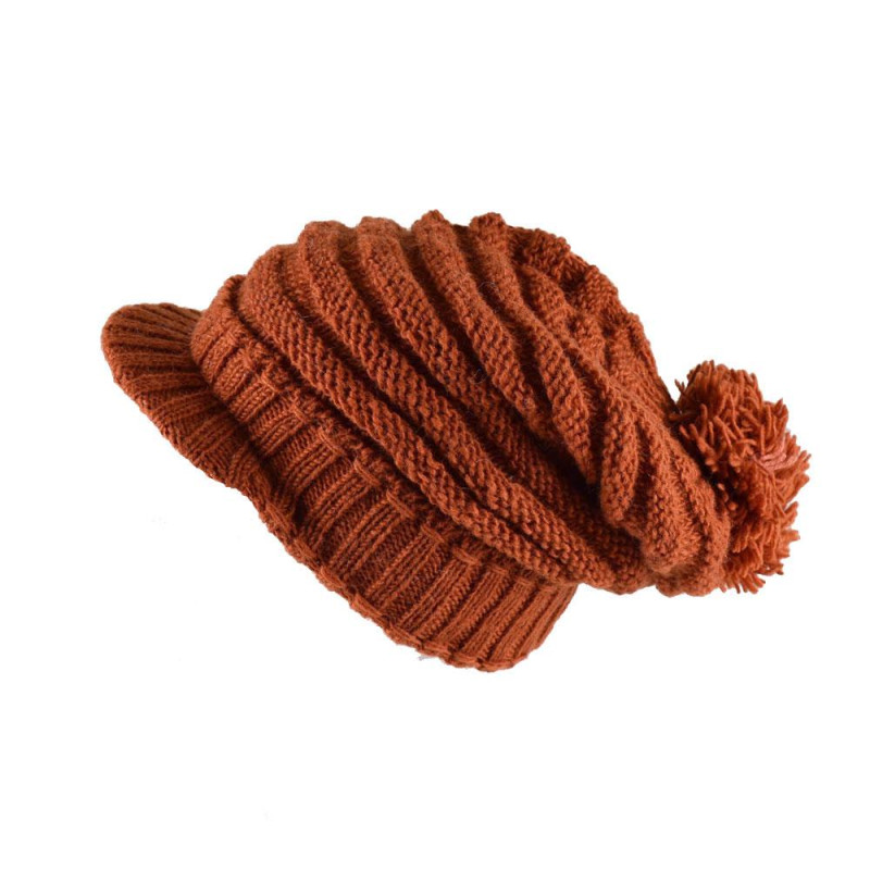 Casquette Dreadlocks laine maille tricotée, doublé polaire, chaud et confortable ton Rouille.
