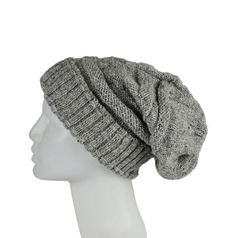 Bonnet long laine maille tricotée, doublé polaire, chaud et confortable couleur gris clair.
