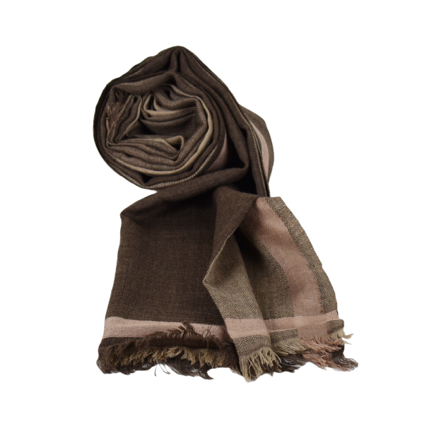 Cette écharpe masculine, confectionnée dans une laine fine de qualité supérieure, offre un mélange harmonieux de style et de confort. Son motif chevron bicolore, réalisé par un tissage complexe à quatre tons, apporte une touche sophistiquée et moderne à n'importe quelle tenue. La bordure en soie unie, assortie aux couleurs de l'écharpe, ajoute une note d'élégance supplémentaire et souligne la finesse du travail artisanal.