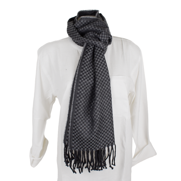 L'écharpe en laine épaisse, ornée d'un motif de petit damier, est un accessoire incontournable pour l'homme élégant et soucieux du détail. Son design classique et raffiné lui confère une polyvalence inégalée, permettant de sublimer un look décontracté ou formel avec élégance discrète.