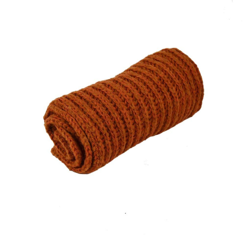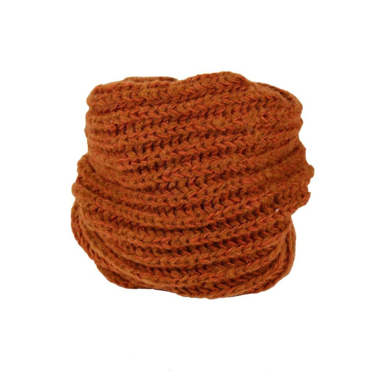 Écharpe tube tricoté en pure laine orange brique avec 20% de mohair, douce et agréable au toucher.