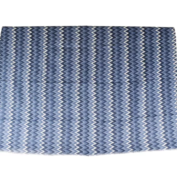 Une grande écharpe en coton imprimé graphique au ton bleu marine.