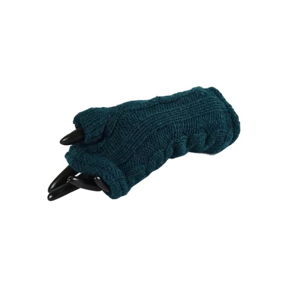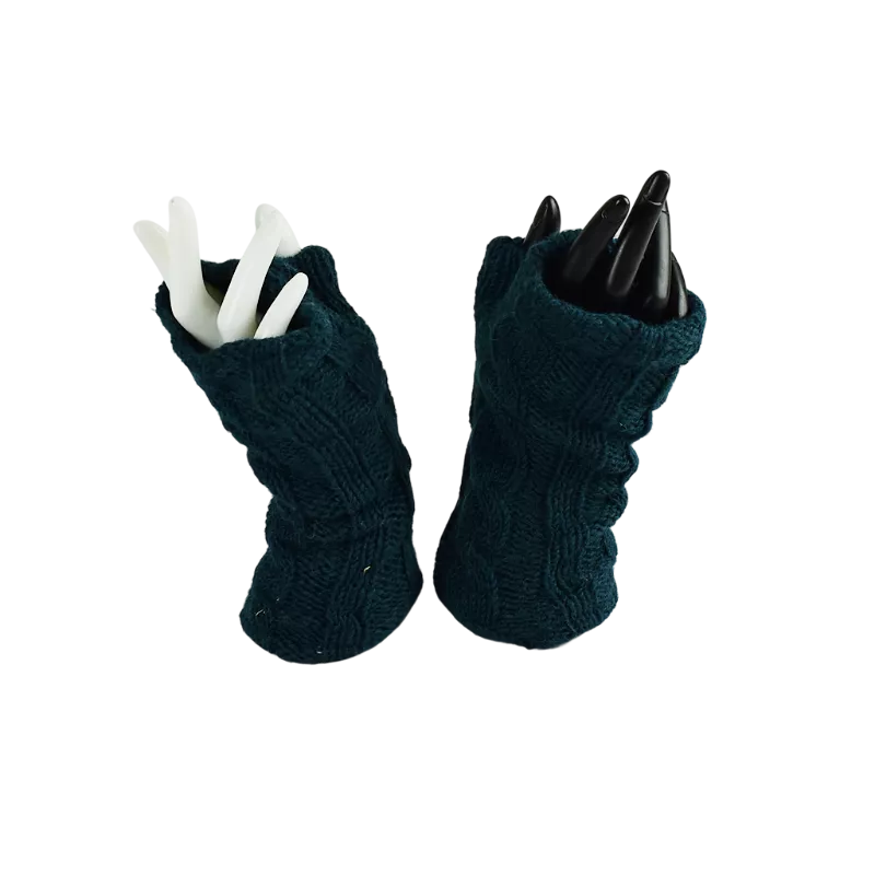 Mitaines longues en laine tricotée avec motif tressé ton Bleu pétrole, doublées en polaire douce. Pratique pour les activités extérieures en gardant une partie de sa main au chaud.