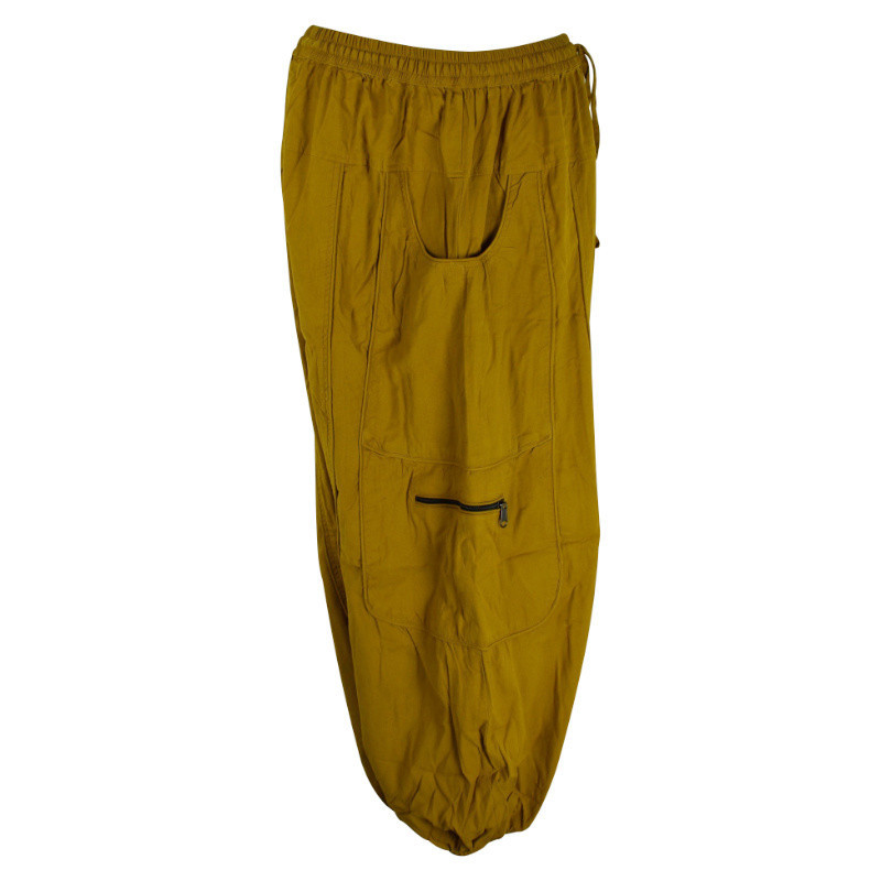 Pantalon Dewas Ethnique Uni Délavé Moutarde