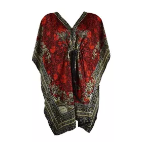 Robe ethnique Supali en coton popeline à fines bretelles avec broderie spirale sur ton noir et rouge.