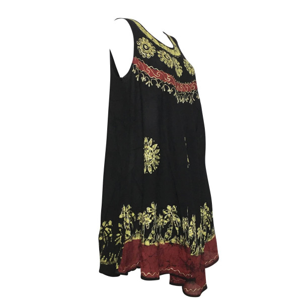 Robe grande taille fine et légère Noir et Batik Bordeaux et Ocre.
