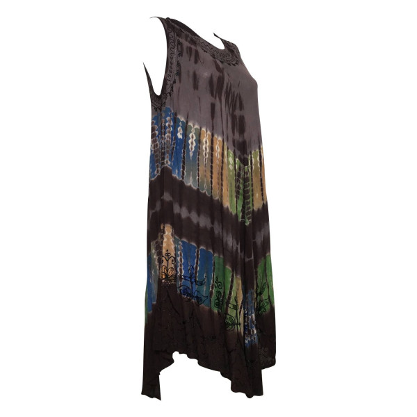 Robe grande taille fine et légère en batik Chocolat et multicolore.