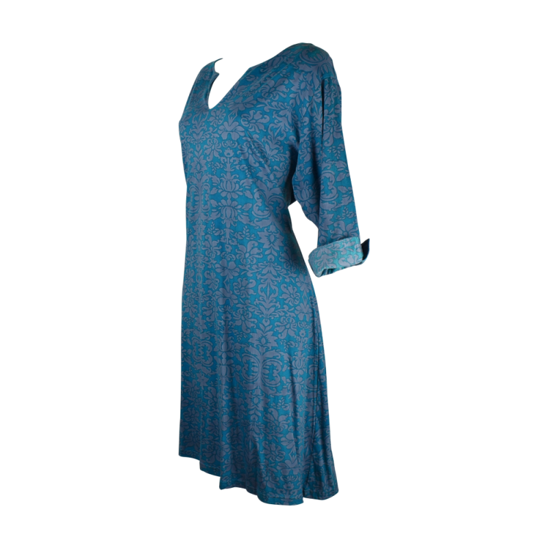 Le tissu doux et respirant assure un port agréable tout au long de la journée. La coupe midi, élégante et intemporelle, met en valeur la silhouette tout en offrant une liberté de mouvement appréciable. Les manches trois-quart apportent une touche de raffinement, tandis que le col en V allonge visuellement le cou et ajoute une touche féminine.
