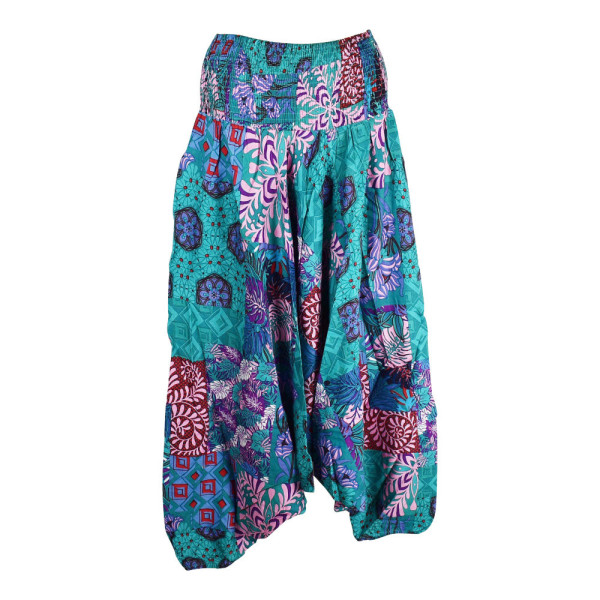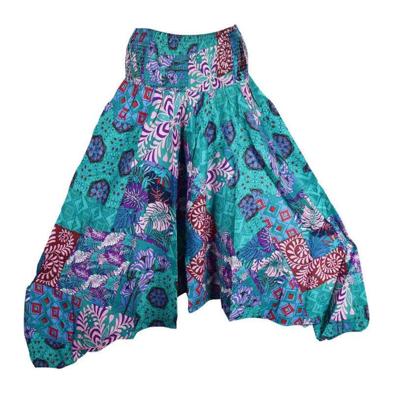 Sarouel femme 3 en 1 fabriqué en viscose imprimé graphique et floral.