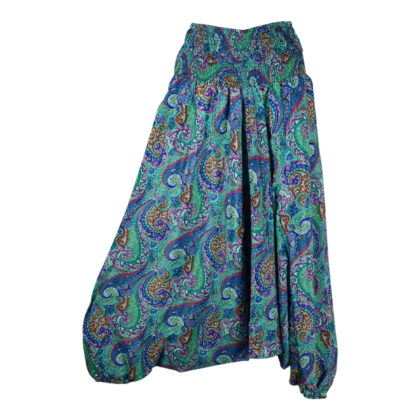 Le sarouel 3 en 1 imprimé paisley vert offre une polyvalence remarquable. Cette pièce versatile en mousseline de polyester fluide se métamorphose selon vos envies : portez-la à la taille, en combi-sarouel tendance ou en élégante tunique. Son motif cachemire traditionnel aux tons verdoyants apporte une touche de sophistication intemporelle à votre garde-robe.