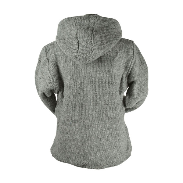 Veste Laya 100% Laine tricotée unie gris clair, doublé polaire et capuche amovible.